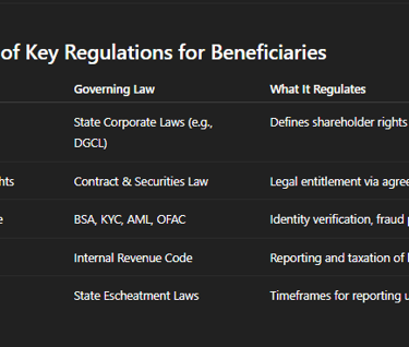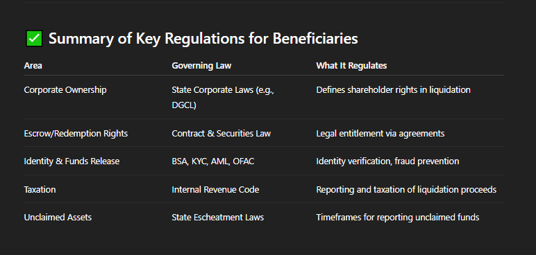 Regulates identity verification of beneficiaries receiving money through financial institutions or escrow agents.